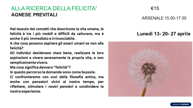 Ci confronteremo con voci della filosofia antica, ma anche con pensatori vicini al nostro tempo, per riflettere, stimolare i nostri pensieri e condividere le nostre esperienze.